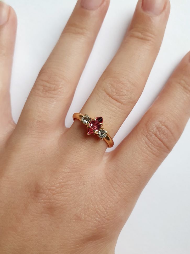 Pink - Vintage Gold Plated Ring with Crystal