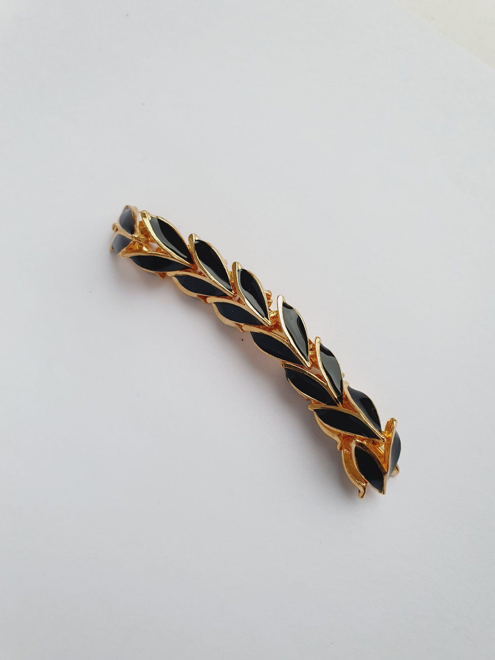 Vintage 80s Gold Plated Black Enamel Bracelet