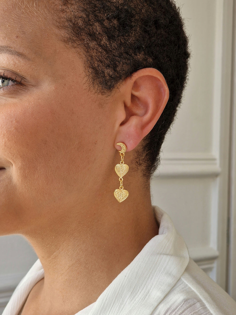Vintage Gold Plated Crescent Moon & Heart Drop Earrings