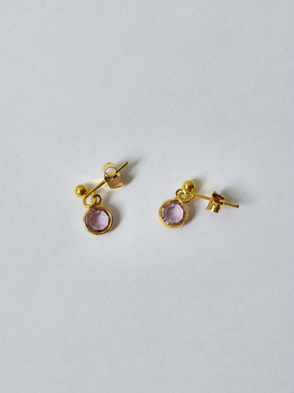 Vintage Gold Plated Lilac Purple Crystal Drop Earrings