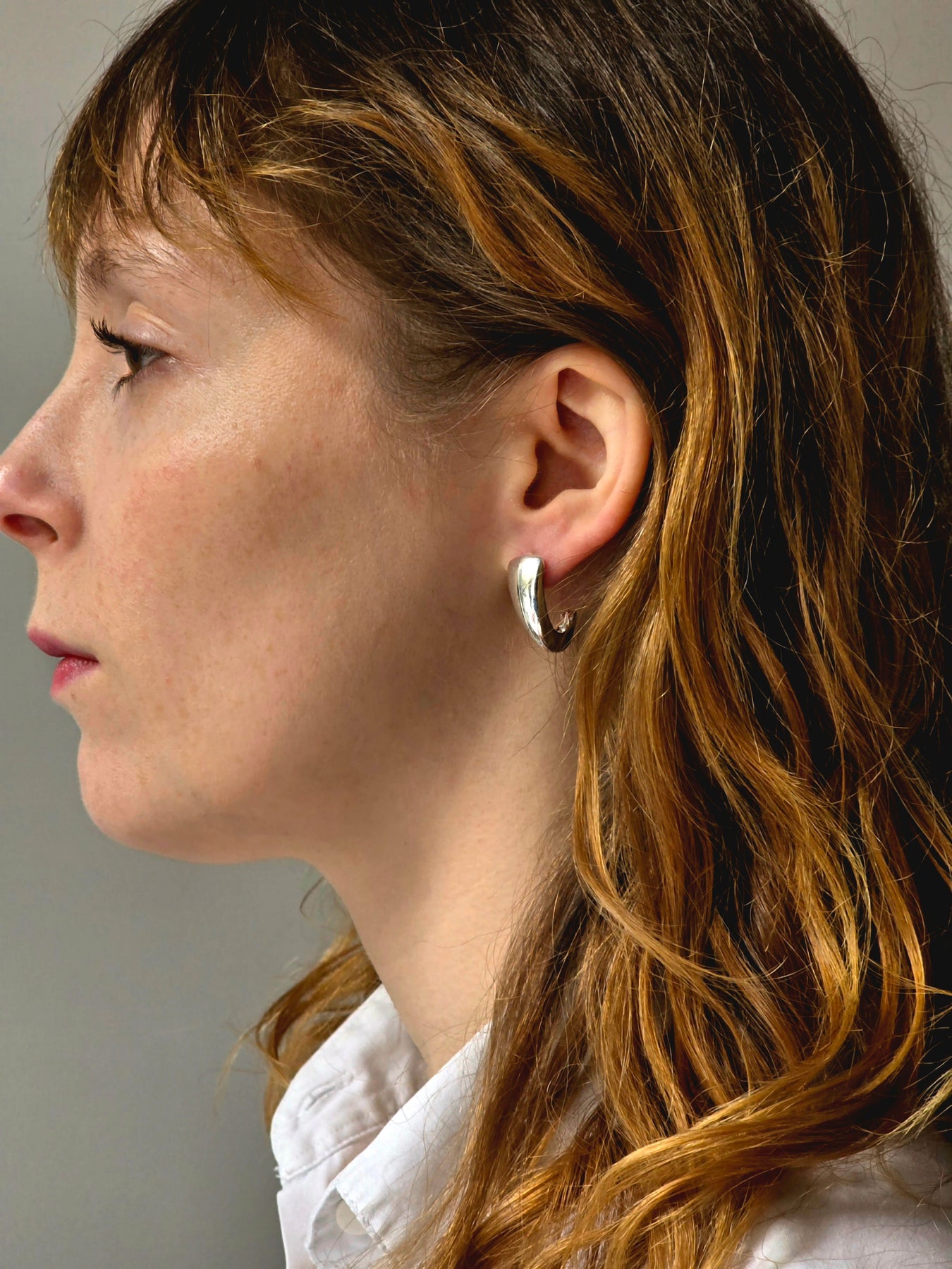 Vintage silver plated half hoop Earrings. Deadstock, never been worn and in excellent condition.