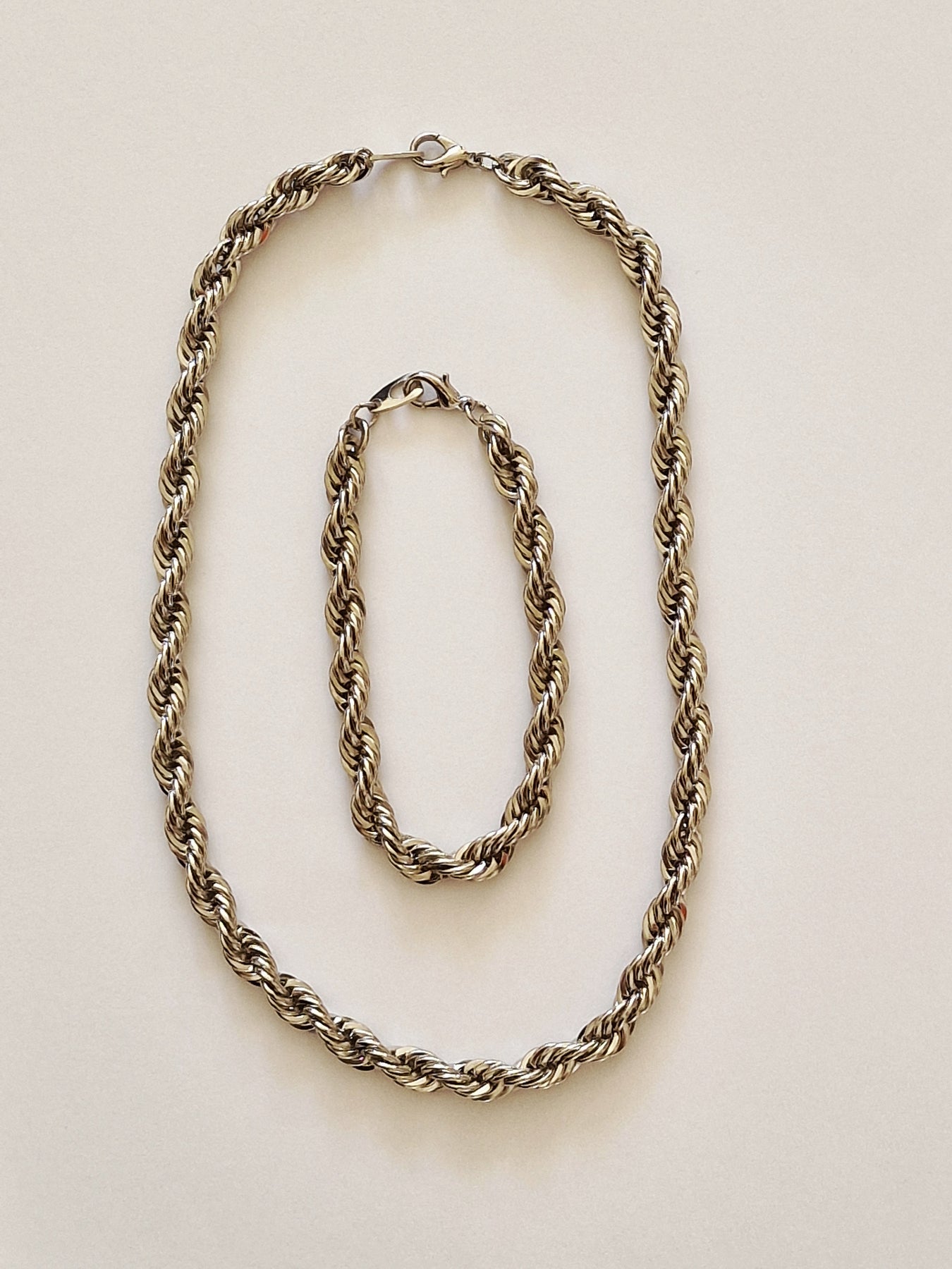 Vintage silver plated twist rope chain necklace and bracelet set. Wear these pieces as a set or individually!