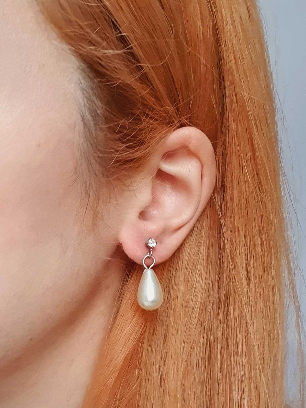 Vintage silver toned drop earrings with beautiful faux pearl and diamante stud.