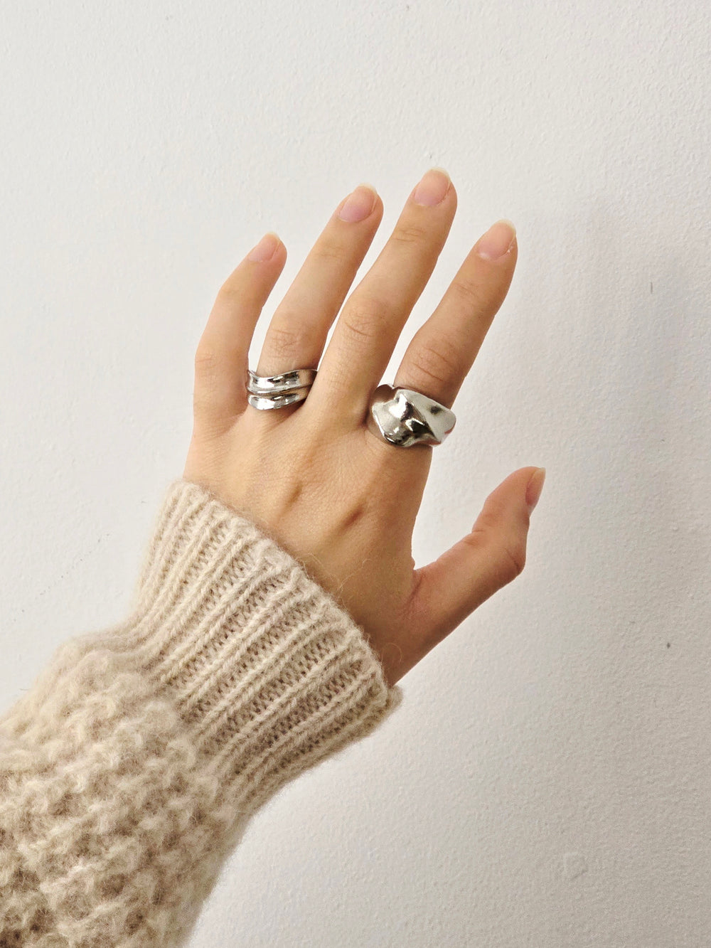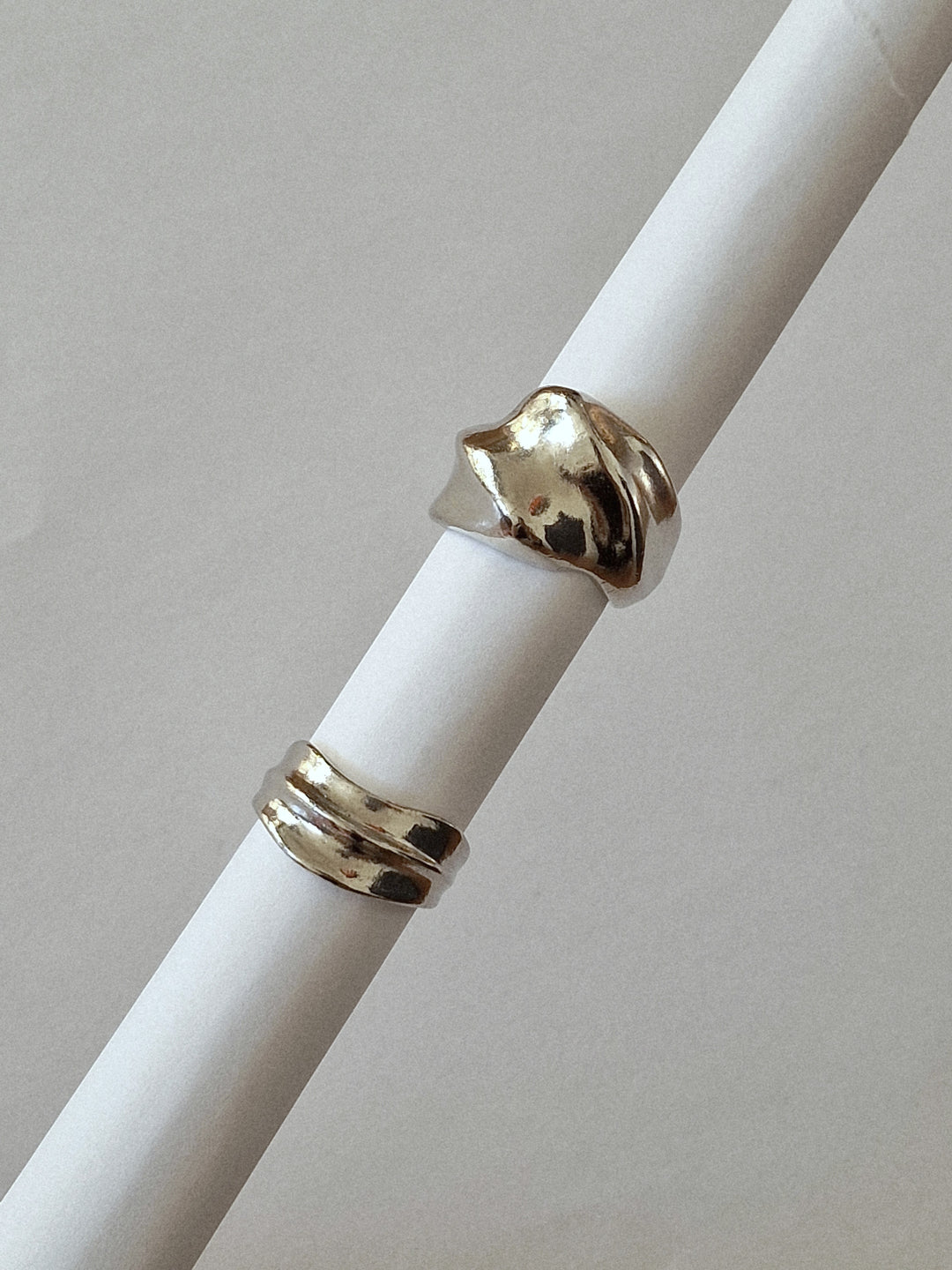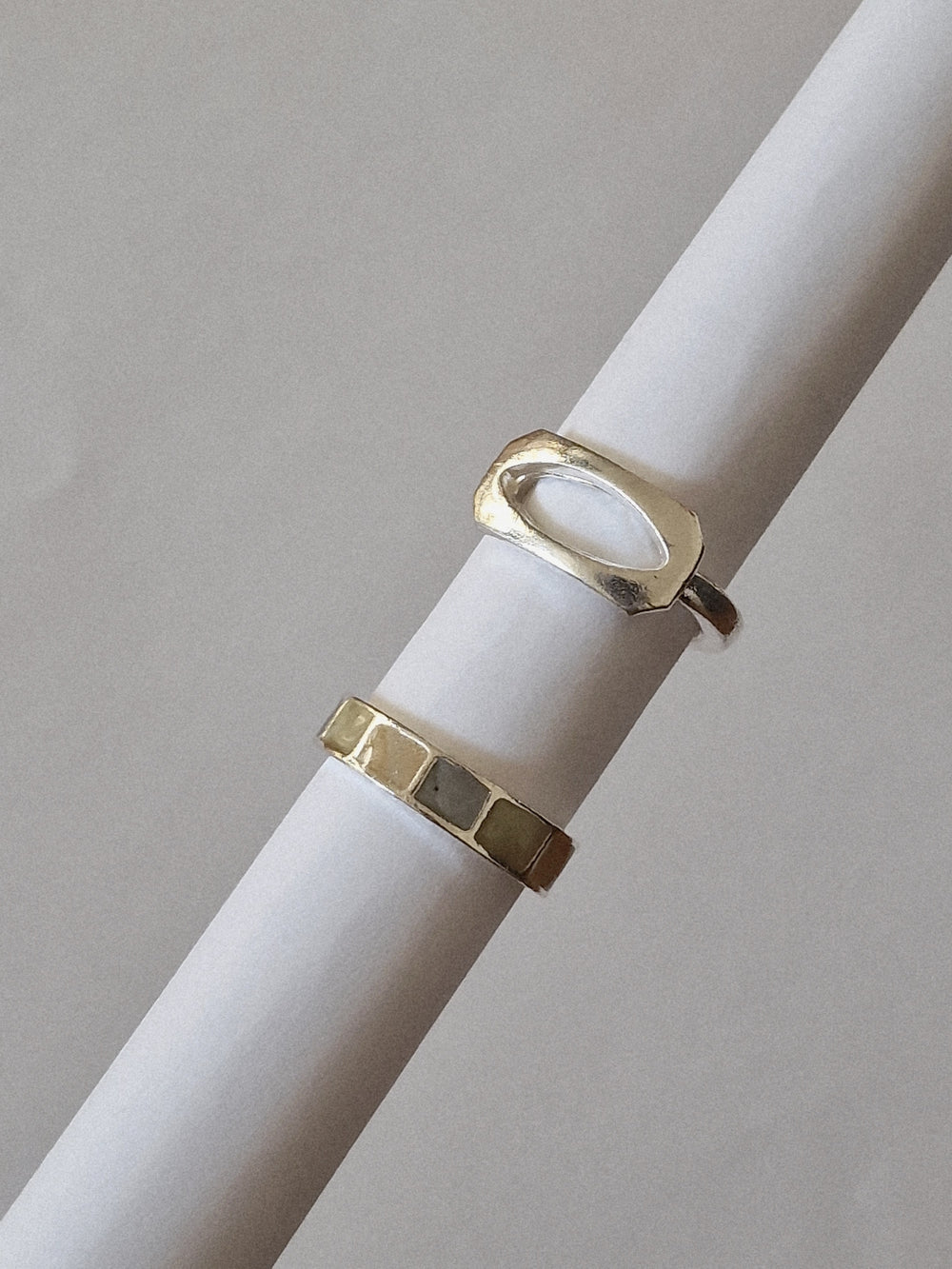 Vintage Silver Plated Enamel and Cutout Ring Set