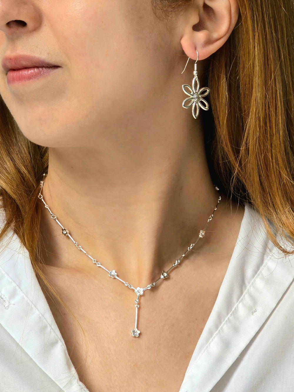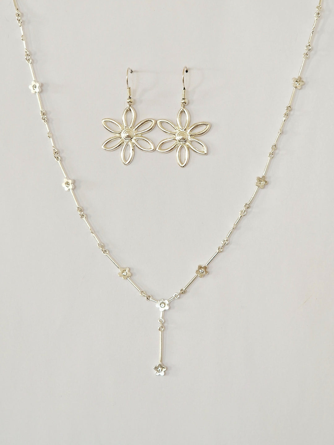 Vintage Silver Plated Flower Necklace and Drop Earring Set
