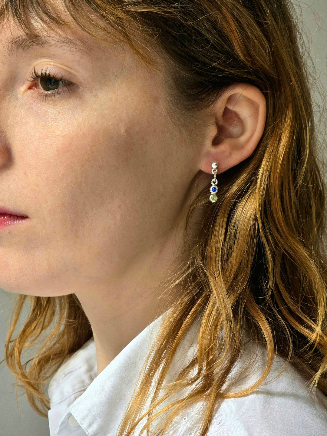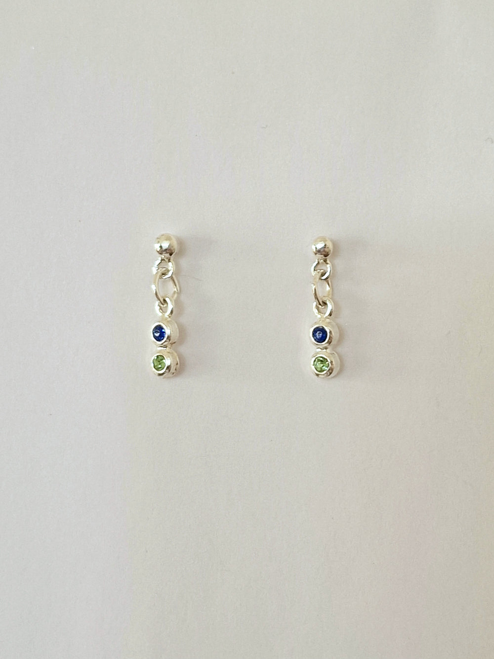 Vintage Silver Plated Blue & Green Crystal Dainty Drop Earrings