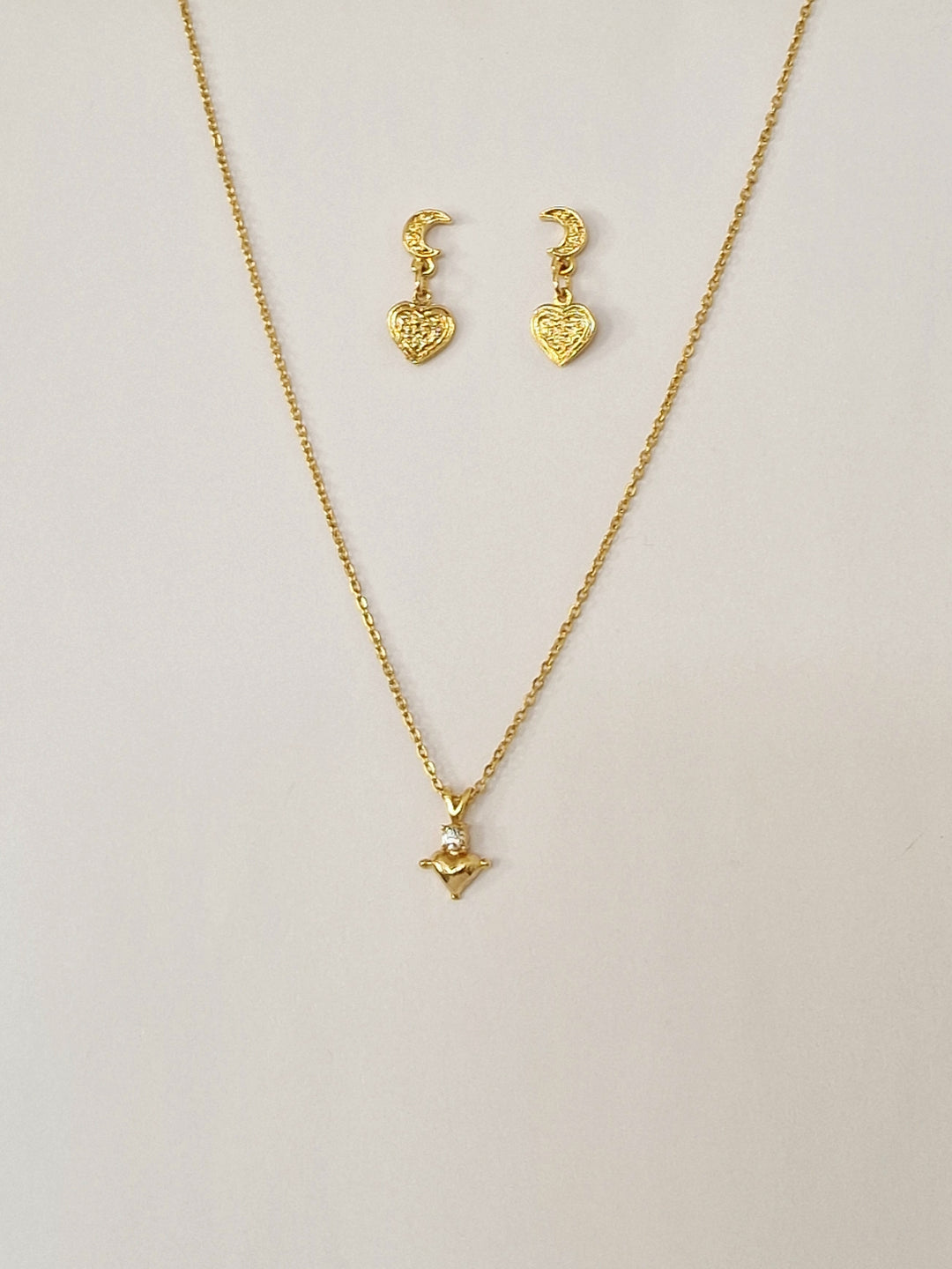 Vintage Gold Plated Heart Charm Necklace and Earring Set