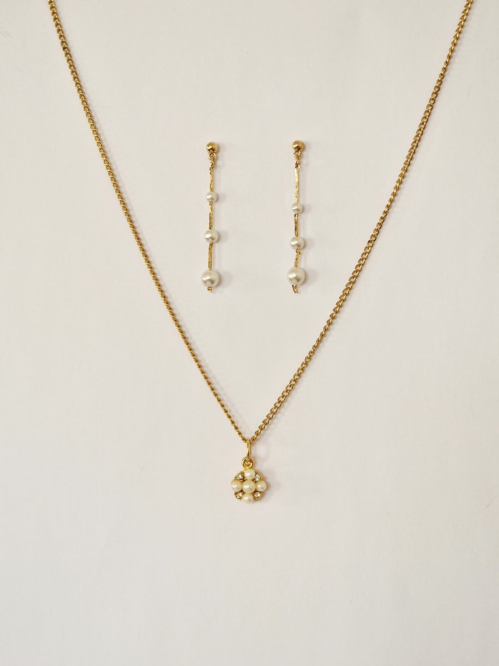 Vintage Gold Plated Dainty Pearl Necklace and Earring Set