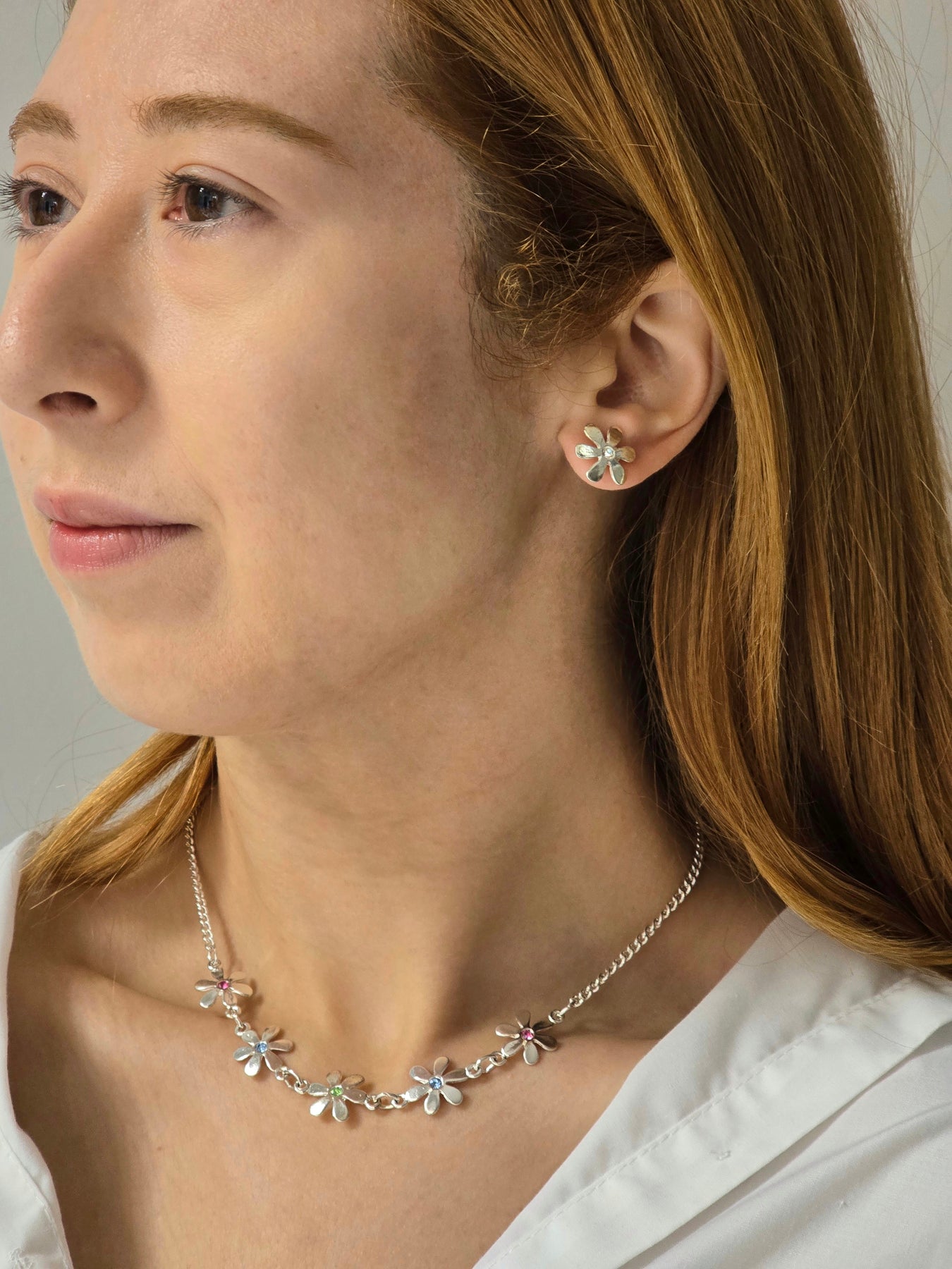 Vintage Silver Plated Flower Crystal Stud Earrings
