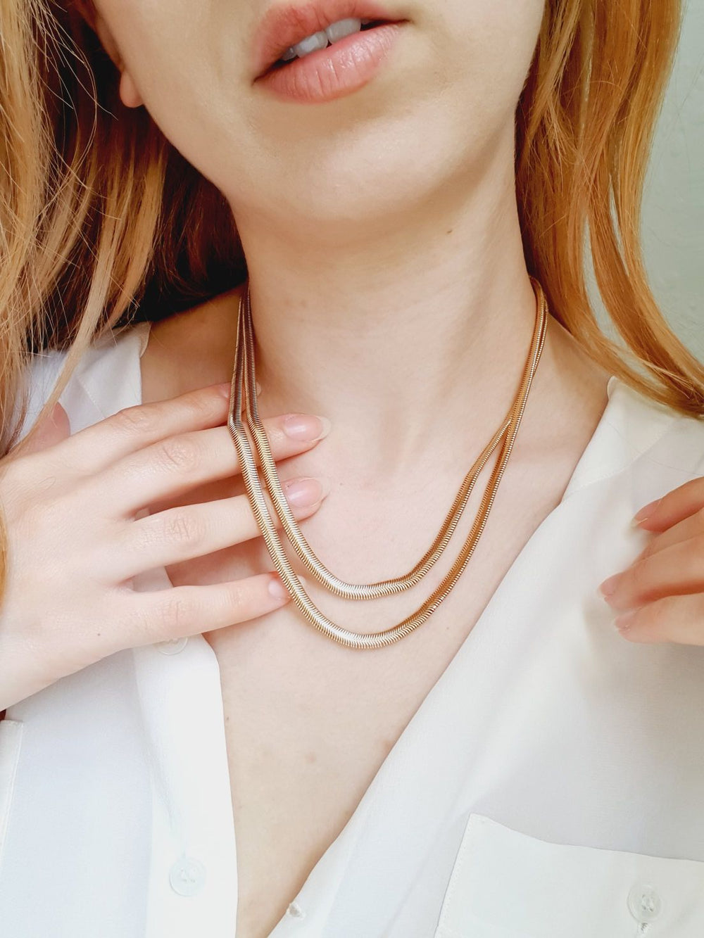 Gorgeous double flat herringbone chain. Gold toned metal and adjustable length.