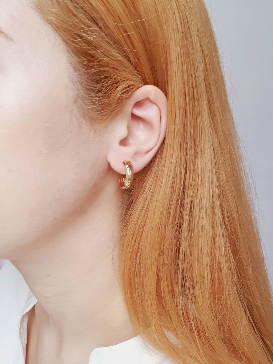 Vintage gold plated hoop earrings. Minimal design with subtle geometric pattern.