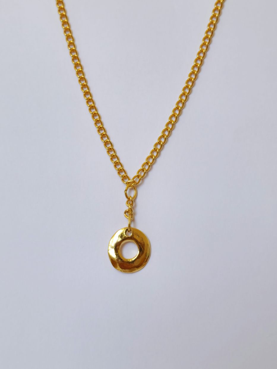 Vintage gold plated curb chain pendant necklace with an organic circle charm.