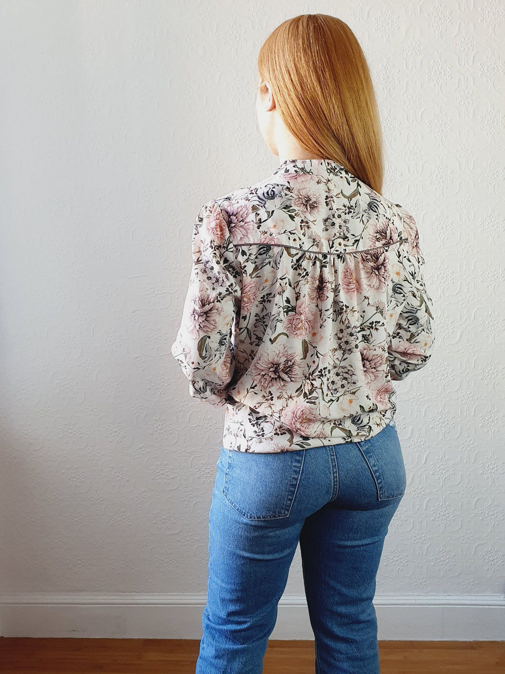 Beautiful preloved blouse in a pink floral pattern with piping detail and pussy bow neckline. A great piece to dress up your outfit and a good choice for your professional wardrobe as well! Drapes beautifully and is in excellent condition.