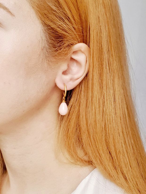 Vintage gold plated drop earrings with beautiful pink pearl.